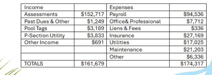 Well, here’s the truth: Everything is NOT fine. A $12K+ hole in the budget doesn’t “just happen.” It takes months of poor decisions, lack of planning, and outright mismanagement to screw up a community this badly.